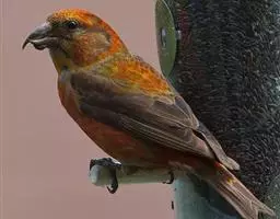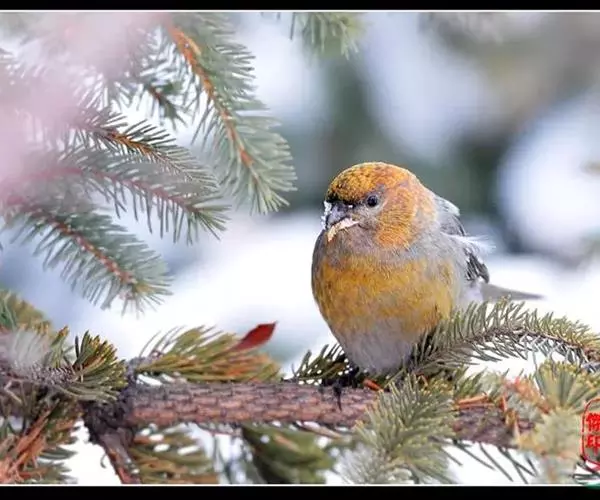 交嘴雀喜啄食大量的落叶松和云杉及冷杉的种子,倒悬进食,用交嘴嗑开松子。
