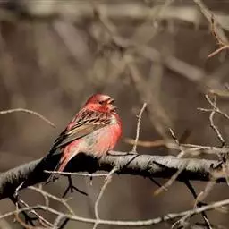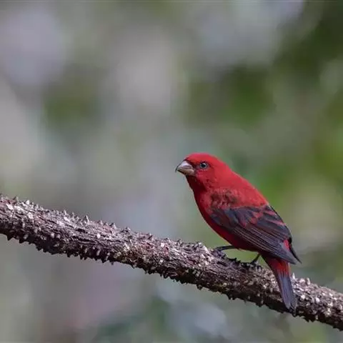 酒红朱雀小型鸟类,体长13~15厘米。雄鸟通体深红色,头部深朱红或棕红色,下背和腰玫瑰红色,…