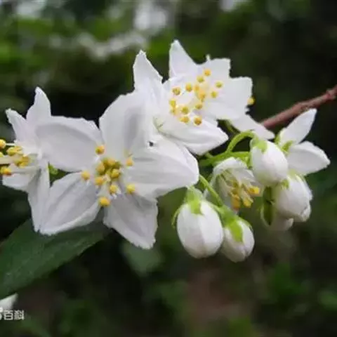 小花溲疏常见的株形是丛生圆头形,苗木定植后,对所选留的主枝进行重短截,促使其生发分枝。冬季修剪时,将细弱枝及根茎部萌生的根蘖苗疏除。对于生长枝较弱的细弯枝,可截去全长的1/5,只保留枝条中饱满的花芽,对长势较旺、顶端稍重的直立长花枝选择3至4个缓放,其余过长的花枝采取回缩方法处理;对于徒长枝可对其重短截,促其多生分枝,增加开花枝条,也可留作更新枝备用。