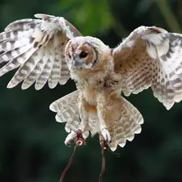 栗鸮:是鸟纲、草鸮科的猫头鹰。体长约29厘米,体重311-360克。是一种中等体型的红褐色鸮。…