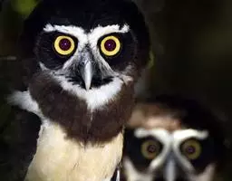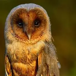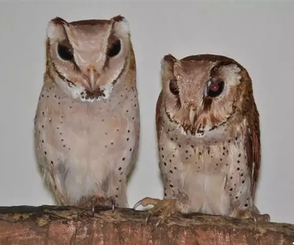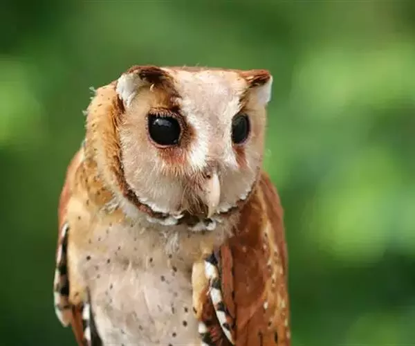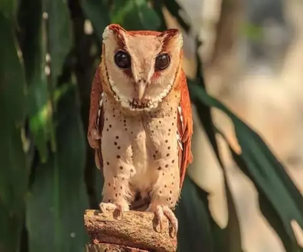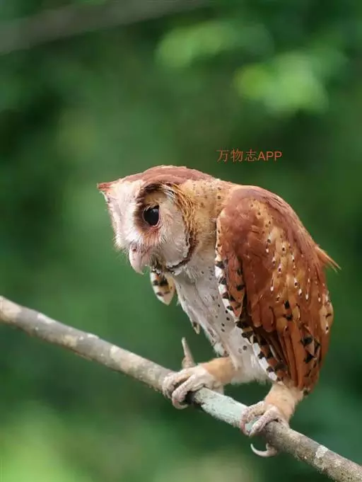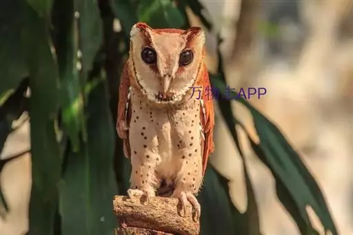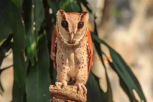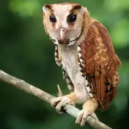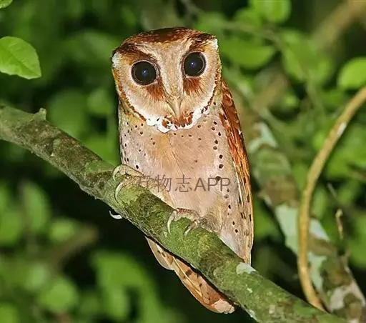 栗鸮(学名:Phodilus badius),俗名猴面鹰。中等体型(27厘米)的红褐色鸮。其心形脸庞及时而竖起的“耳朵”与仓鸮甚似。上体红褐而具黑白点斑,下体皮黄偏粉具黑点,脸近粉色。虹膜-深色;嘴-褐色;脚-污褐色。