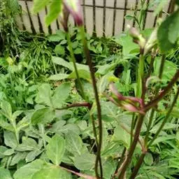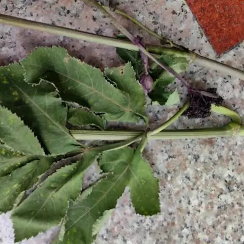 茎粗壮,中空,紫色,径1.5-5厘米,无毛,有纵深沟纹。