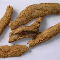 【性状】性状鉴别:根头部短粗,长2-5cm,直径2-3cm。表面暗灰褐色具横环纹,顶部有叶基痕,下面生有数个支根。支根长5-15cm,直径0.5-1cm。表面有纵皱纹及多数横向突起的皮孔状疤痕,并可见渗出的棕褐色粘稠的树脂样物质。质脆,断面皮部灰白色,木部黄白色。气芳香,味微甜而后辛、苦。