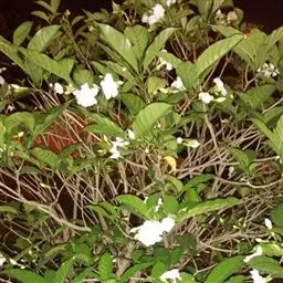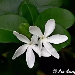 狗牙花 R. Br. ex Roem. & Schult.)是夹竹桃科山辣椒属灌木植物;枝灰绿色;叶椭圆形或椭圆状长圆形,叶面深绿色,背面淡绿色,叶面扁平;花聚伞花序腋生,通常双生,萼片长圆形,边缘有缘毛,花冠白色;果长圆形;花期六至十一月;果期秋季。狗牙花因其花冠裂片边缘有皱纹,状如狗牙,故名。狗牙花原产于印度及中国云南,在广西、广东、台湾及亚洲热带和亚热带等地区广泛栽培。狗牙花喜温暖湿润,不耐寒,宜半阴,对土壤要求不严,喜肥沃、排水良好的酸性土壤,常生长于山地灌木丛中。狗牙花的主要繁殖方式为扦插。狗牙花味酸、凉,有清热降压、解毒消肿的功效,可用于治疗咽喉肿痛,跌打损伤。狗牙花枝叶茂密,株型紧凑,花朵净白素丽,典雅朴质,盛花时十分美观,且花期长,具有一定观赏价值。狗牙花还有较高的经济价值,园林中应用极为普遍,可丛植于林缘、路