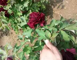 栽植:选用二年生、无病虫害、健壮的凤丹种苗,于9-10月移栽。移栽前,将不同规格苗分开,分别移栽。按株行距40厘米×50厘米打穴,穴深20厘米左右,穴长25-30厘米,每穴栽苗1株,栽植时向穴中填土,填至半穴时轻轻向上提苗并左右摇晃,栽后填土踏实。栽后的第1年可以间作芝麻,以遮荫防旱。