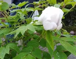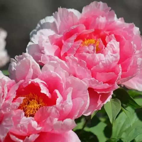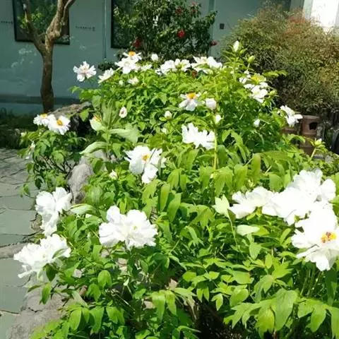 落叶灌木,茎高2米,分枝短、较为粗狂,耐干旱、瘠薄、高寒。其在生长过程中叶片表面为绿色、背面为淡绿色,一些凤丹的叶面有时具有白粉。花单生枝顶,苞片数量为5片,呈现出长椭圆形,大小不等;萼片数量5个,绿色,宽卵形;花瓣的数量也是5片,呈现出白色或者粉红色。 凤丹