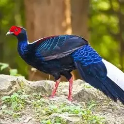 黑长尾雉大型鸡类,体长53~88厘米。雄较雌大。雄鸟通体紫蓝色,脸鲜红色,翅上有一条显著的白色翅斑…