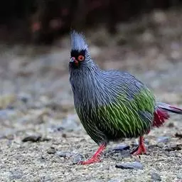 蓝马鸡是珍稀名贵的禽类,羽毛美丽,可作装饰用,头侧绯红,耳羽簇白色、突出于颈部顶上,通体蓝灰色,…