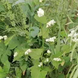 在没有放蜂条件的地方采用人工辅助授粉方法,也可提高苦荞麦产量,辅助授粉以牵绳赶花或长棒赶花为好。辅助授粉要避免损坏花器,在露水大、雨天或清晨雄蕊未开放前或傍晚时,都不宜进行人工辅助授粉。苦荞为自花授粉作物,花数可达1500~3000朵,结实率一般40~60%,在肥水期应采取限制其无限生长的措施,促进干物质积累,提高单株粒重,获得优质高产。