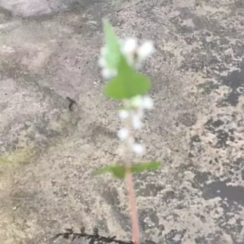 苦荞麦(学名:Fagopyrum tataricum (L.) Gaertn.),别名菠麦、乌麦、花荞等,一年生草本植物。茎直立,高30-70厘米,分枝,绿色或微逞紫色,有细纵棱,一侧具乳头状突起,叶宽三角形,长2-7厘米,两面沿叶脉具乳头状突起,下部叶具长叶柄,上部叶较小具短柄。生长在田边、路旁、山坡、河谷等潮湿地带,在中国东北、华北、西北等地都有分布。苦荞麦性味苦、平、寒,有益气力、续精神、利耳目、降气宽肠健胃的作用。