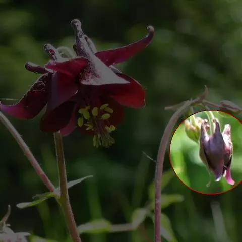 总花梗腋生,长3-5厘米,疏生深褐色腺毛;花3-9朵,排成总状花序;花梗细,基部有1条形苞片;花小,黄色或淡紫色;侧生萼片2,卵形,先端突尖;旗瓣圆形,背面中肋有龙骨突,先端有短喙;翼瓣有柄,2裂,基部裂片近卵形,先端尖,上部裂片较大,斜卵形,尖;唇瓣漏斗状,基部突然延长成螺旋状卷曲的长距;花药钝。