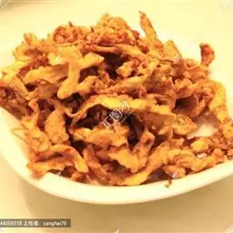 4.把腌制好的肉片放到油锅里用热油炸一炸,炸过的肉片吃起来肥而不腻。炸至3-5成熟即可。