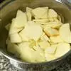 北豆腐(较有韧性)切大片,炸至表面金黄,发硬。