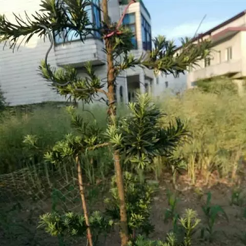 播种后第二年春天,间苗移栽,每平方尺保留1株(最多2株)。第四年春天每2平方尺保留1株,其余均另行移栽。移栽时须根极少,起苗时要尽量保护主根,以免折断。第五年春,主干已经形成,主根也形成众多须根,起苗定植要带土,而且要尽量保留须根,以确保成活。定值坑深1立方米,填人生活垃圾或其他底肥,约占坑2/3,盖上土再植树。定植后浇足水(每窝一桶,以后酌减)。移栽或定植都勿剪割叶片,以免影响树形,而且成活后生长快。如遇晴天,则采用人工喷水,避免叶片萎蔫。如晴天叶片正常则不必再浇水、喷水。