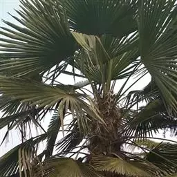 蒲葵 剥棕摘叶的时间都在移栽、定植的月份进行。因为在这段时间内,植株从小就受到播种、移栽、定植的锻炼,可以避免因剥棕(苞片)受到伤害而死亡。第一次剥棕要在定植后5年进行,这样形成的主干粗壮,剥早了容易造成主干上大下小。每一次剥棕都必须留第三年的叶片不剥,如果留得太少,伤其心,植株必定死亡。如果没有剥棕,对枯黄的叶片及时将贴苞片割掉,使植株一年四季都呈现出青翠的热带风光,南国景色。