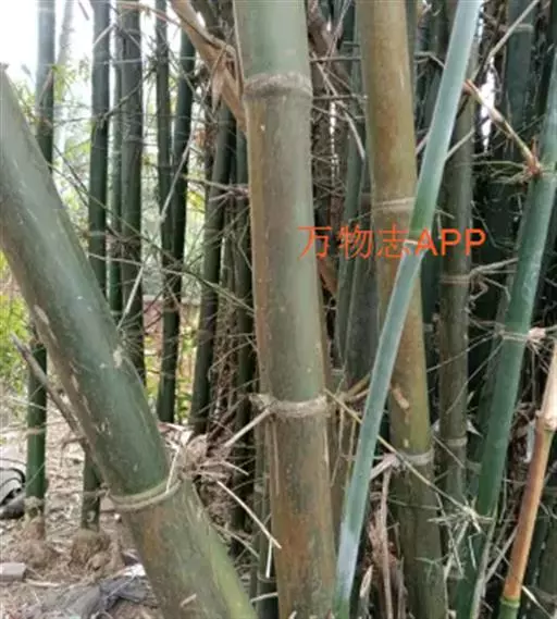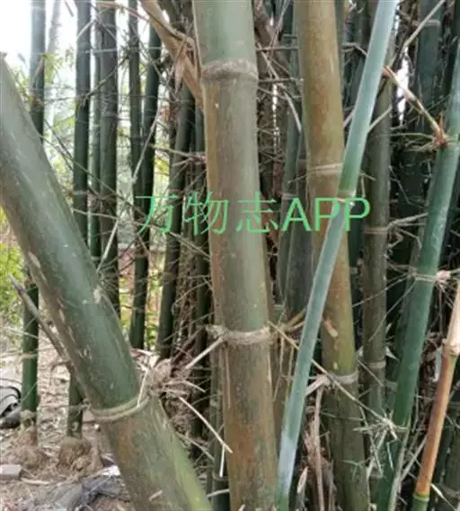 竿高6-12米,直径4-6厘米,尾梢略弯,下部挺直;节间长30-40厘米,幼时薄被白蜡粉或近于无粉,无毛或有时仅于上半部疏生脱落性小刺毛;竿壁厚5毫米,节处稍有隆起,竿基部数节于箨环之上下方各环生一圈灰白色绢毛;分枝常自竿基部第二或第三节开始,以数枝乃至多枝簇生,其中3枝较为粗长。箨鞘早落,革质,背面通常无毛,或有时被极稀疏的脱落性贴生小刺毛,干时纵肋稍有隆起,近外侧边缘一边有时具数条纵向黄白色细条纹,先端向外侧一边长下斜,呈极不对称的拱形;箨耳极不相等,形状各异,质极脆,略皱,边缘被波曲状细刚毛,大耳极下延,其下延程度可达箨鞘全长的2/5-1/2,倒披针形至狭长圆形,长5-6.5厘米,宽约1.5厘米,小耳近圆形或长圆形,直径约1厘米,或有时完全与箨片基部相连,故难以区分;箨舌高3-5毫米,边缘呈不规则齿裂或条裂,被短流苏状毛;箨片直立,易脱落,呈不对称的三角形至狭三角形,背面疏生脱落性小刺毛,腹面近基部脉间被棕色小刺毛而上部粗糙,先端渐尖具锐利硬尖头,基部略微收窄后即向两侧外延与箨耳相连,此相连部分约为1厘米,箨片基部宽度约为箨鞘先端宽的3/5。叶鞘无毛,背部具脊,纵肋隆起;叶耳有时不存在,存在时则呈卵形或狭倒卵形乃至倒卵状长圆形,边缘具数条直或曲的细长繸毛;叶舌高约0.5毫米,截形,边缘具微齿;叶片披针形至宽披针形,一般长12-25厘米,宽14-25毫米,上表面无毛,下表面密生短柔毛,先端骤渐尖具粗糙钻状尖头,基部近圆形或楔形。假小穗以数至多枚簇生花枝各节,线形,长2.5-5.5厘米;小穗含小花5-6朵,基部承托以数片具芽苞片;小穗轴节间形扁,长3-4毫米,顶端膨大且在其边缘被短纤毛;颖仅1片,长圆形,长9-10毫米,背面无毛,但有许多极小的紫色斑点,具11脉,先端急尖具短尖头;外稃与颖相似,但长12-13毫米,具13-15脉;内箨披针形,长约11毫米,具2脊,脊近顶端被短纤毛,脊间4脉,脊外每边各具2脉;鳞被3,不相等,边缘被长纤毛,前方2片较窄,长约2毫米,后方1片较大,宽倒卵形或近圆形,长约2毫米;花药长5毫米,顶端又开;子房近球状,直径约1毫米,顶端被短硬毛,花柱极 短,被短硬毛,柱头3,羽毛状。颖果幼时近倒卵状,长约5毫米,顶部被短硬毛,并留 有柱头残余。