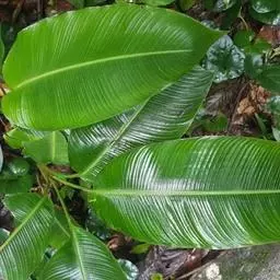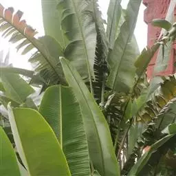 红蕉,假茎高1-2米。叶片长圆形,长1.8-2.2米,宽68-80厘米,叶面黄绿色,叶背淡黄绿色,…