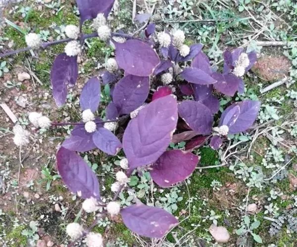多年生草本,高20-50厘米;茎直立或基部匍匐,多分枝,上部四棱形,下部圆柱形,两侧各有一纵沟,在顶端及节部有贴生柔毛。叶片矩圆形、矩圆倒卵形或匙形,长1-6厘米,宽0.5-2厘米,顶端急尖或圆钝,有凸尖,基部渐狭,边缘皱波状,绿色或红色,或部分绿色,杂以红色或黄色斑纹,幼时有柔毛后脱落;叶柄长1-4厘米,稍有柔毛。头状花序顶生及腋生,2-5个丛生,长5-10毫米,无总花梗;苞片 及小苞片卵状披针形,长1.5-3毫米,顶端渐尖,无毛或脊部有长柔毛;花被片卵状矩圆形,白色,外面2片长3-4毫米,凹形,背部下半密生开展柔毛,中间1片较短,稍凹或近扁平,疏生柔毛或无毛,内面2片极凹,稍短且较窄,疏生柔毛或无毛;雄蕊5,花丝长1-2毫米,花药条形,其中1-2个较短且不育;退化雄蕊带状,高达花药的中部或顶部,顶端裂成3-5极窄条;子房无毛,花柱长约0.5毫米。果实不发育。花期8-9月。