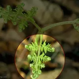 叶簇生直立,密被腺状毛,膜质,叶轴及羽轴有腺毛密生;孢子囊群小,每小裂片一个。…