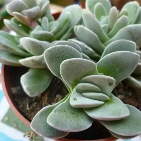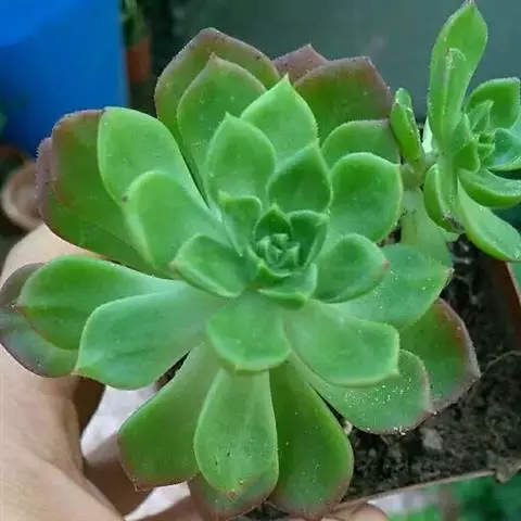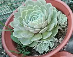 蓝石莲是景天科、拟石莲花属的多肉植物。茎部粗壮,成熟植株茎部木质化。叶片莲座型密集排列,株径不会很大,…