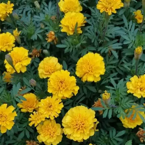 万寿菊是菊科万寿菊属一年生草本植物,别名孔雀菊、缎子花、臭菊花、西番菊、红黄草、小万寿菊、臭芙蓉、孔雀草。万寿菊茎近基部分枝。叶羽状分裂,长5-10厘米,宽4-8厘米,裂片长椭圆形或披针形,具锐齿,上部叶裂片齿端有长细芒,叶缘有少数腺体。头状花序单生,径5-8厘米,花序梗顶端棍棒状。总苞长1.8-2厘米,径1-1.5厘米,杯状,顶端具尖齿。舌状花黄或暗橙黄色,长2.9厘米,舌片倒卵形,长1.4厘米,基部成长爪,先端微弯缺。管状花花冠黄色,长约9毫米,冠檐5齿裂。瘦果线形,被微毛;冠毛有1-2长芒和2-3短而钝鳞片。花期7-9月。万寿菊中国各地均有栽培,在广东和云南南部、东南部已归化,国外原产墨西哥。万寿菊对土壤要求不严,但以肥沃疏松排水良好的土壤为好。耐移栽,种子发芽适温21-24℃,植株生长适合温度为20-29℃。喜温暖和阳光充足的环境,不
