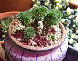 八千代是景天科,景天属多年生肉质植物。植株呈小灌木状,高可达30厘米,多分枝。…
