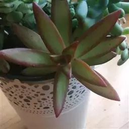 紫珍珠是景天科石莲花属的多年生肉质草本植物。植株中小型;叶片肉质,匙形,呈莲座状紧密排列;叶片粉紫色,…