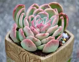 女雏是景天科石莲花属的多肉植物。特征是小巧的株形和橙粉色叶缘。极易生侧芽,…