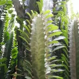 霸王鞭,是大戟科大戟属的多年生肉质灌木,全株含白色乳汁;茎直立,茎基部圆柱形,上部4~5纵棱,…