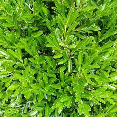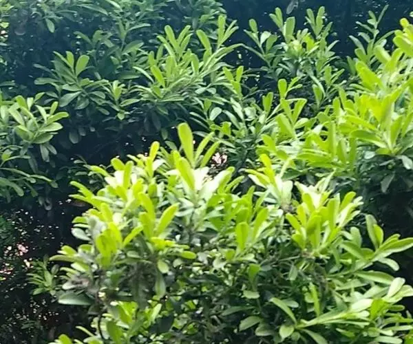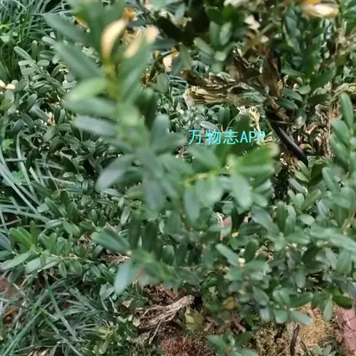 雀舌黄杨(学名:Buxus bodinieri Levl.):灌木,高3-4米;枝圆柱形;小枝四棱形,被短柔毛,后变无毛。叶薄革质,通常匙形,亦有狭卵形或倒卵形,叶面绿色,光亮,叶背苍灰色,中脉两面凸出,侧脉极多,在两面或仅叶面显著。花序腋生,头状,长5-6毫米,花密集;苞片卵形,背面无毛,或有短柔毛;雄花:约10朵。蒴果卵形,长5毫米,宿存花柱直立,长3-4毫米。花期2月,果期5-8月。