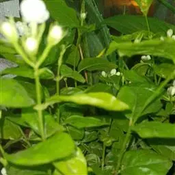 素馨花结的果实不多,果实近碗豆籽大小,一个果实里只有一粒种子。种子在冬腊月果实充分发黑成熟时采收,采收后连外果肉摆放在通风干燥处晾干后于立春节令前后播种;播种苗床用肥沃疏松沙壤地作畦,以15cm行距开浅沟条播后覆土1cm或采用15cmx15cm浅塘点播;播完种后覆盖1层松针或稻草,以防浇水时种子露土,然后杀菌消毒,浇透水,小拱棚扣膜保湿增温,精心管护半年后可成苗出圃。
