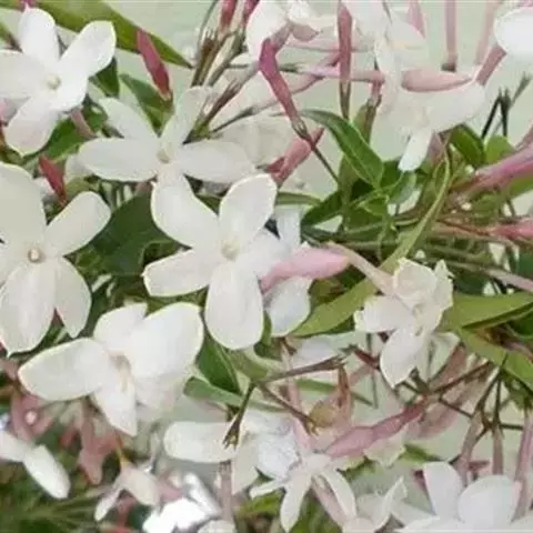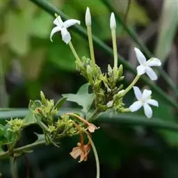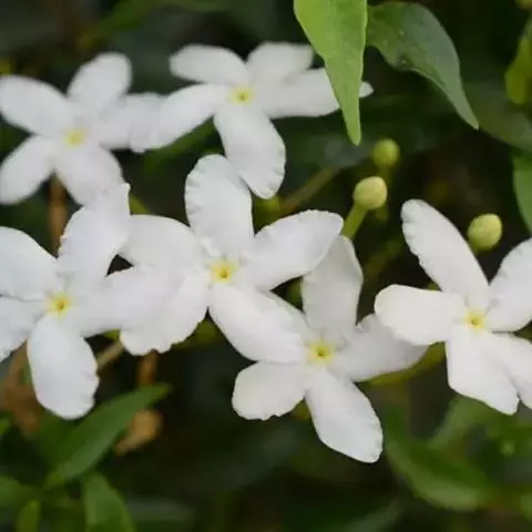 素馨花分株繁殖更为简单易行,适宜于一般家庭少量栽植。分株繁植时,选取母株周围串根萌蘖苗顺根撬出,剪去藤蔓10-50cm以上部分后用塑料薄膜扎紧封顶即成1株新苗,直接用来定植即可。如开春定植,当年冬季可现蕾,次年阳春可大量开花。