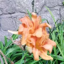 多年生草本,根状茎粗短,具肉质纤维根,多数膨大呈窄长纺锤形。叶基生成丛,条状披针形,长30~60cm,宽约2.5cm,背面被白粉。夏季开橘黄色大花,花葶长于叶,高达1m以上;圆锥花序顶生,有花6~12朵,花梗长约1cm,有小的披针形苞片;花长7~12cm,花被基部粗短漏斗状,长达2.5cm,花被6片,开展,向外反卷,外轮3片,宽1~2cm,内轮3片宽达2.5cm,边缘稍作波状;雄蕊6,花丝长,着生花被喉部;子房上位,花柱细长。
