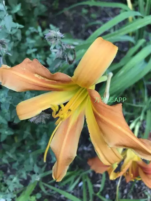 4、童氏萱草H. thunbergh:叶长74cm,花葶高120cm,顶端分枝著花12~24朵,杏黄色,喉部较深,短漏斗形,具芳香。