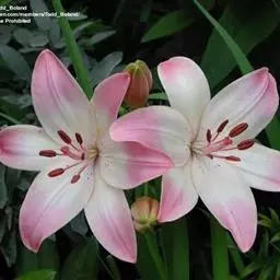 鳞茎人药中药称“百合”,性味甘、平,有润肺止咳,清心安神之功效。主治结核久咳,痰中带血,或热性病余热未退,虑烦惊悸,心神恍惚,神经衰弱,失眠等。