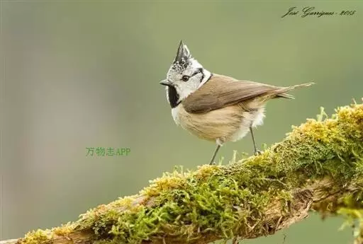 褐冠山雀:为小型鸣禽。体长100-120毫米。头顶和长的羽冠褐灰色或灰色,其余下体橄榄褐色或暗灰色,…