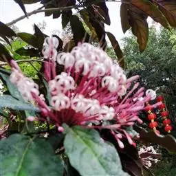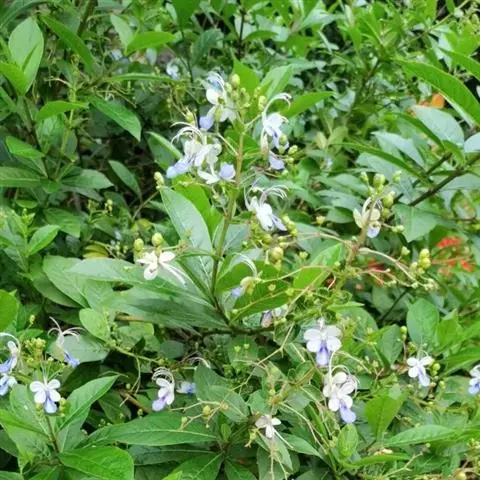 烟火树 Merr.)是唇形科、大青属常绿灌木或小乔木,株高可达4米。幼枝方形,墨绿色。叶对生,…