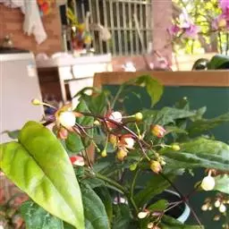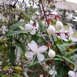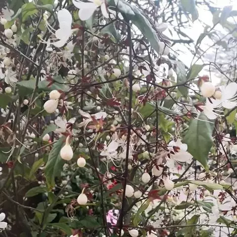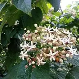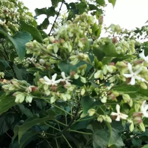 海州常山(学名:Clerodendrum trichotomum Thunb.)是牡荆亚科,大青属灌木或小乔木,高可达10米;老枝灰白色,具皮孔,有淡黄色薄片状横隔。叶片纸质,卵形、卵状椭圆形或三角状卵形,顶端渐尖,表面深绿色,背面淡绿色,伞房状聚伞花序顶生或腋生,通常二歧分枝,疏散,苞片叶状,椭圆形,早落;花萼蕾时绿白色,后紫红色,裂片三角状披针形或卵形,顶端尖;花香,花冠白色或带粉红色,管细,花丝与花柱同伸出花冠外;核果近球形,6-11月。开花结果。