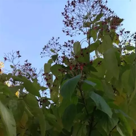 海州常山花序大,花果美丽,可配置于庭院、山坡、溪边、堤岸、悬崖、石隙及林下。