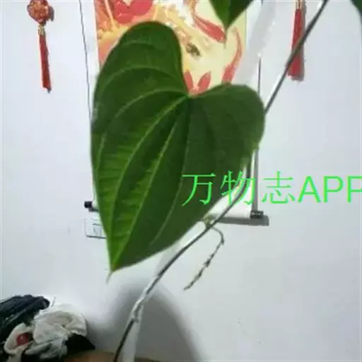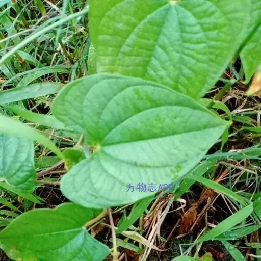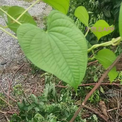 多年生草本野生藤蔓植物。块茎卵圆形或梨形,外皮紫黑色,密布须根,茎左旋,单叶互生,广心状形,基部宽心形,先端长尾状,叶全缘,单性花,雄花序穗状下垂,丛生于叶腋、花小密集,浅绿白色;雌花紧贴中轴,茎中结有若干卵圆形小球,似山药豆。