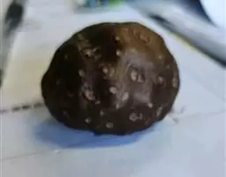 真品黄独(黄药子):外观为圆形或类圆形的片,大小不等,直径约3~7厘米,片厚0.8~1.5厘米,表面棕黑色,有皱纹,密布短小的支根及黄白色圆形的支根痕,微突起,一部分栓皮脱落,脱落后显露淡黄色而光滑的中心柱;断面淡黄色至黄棕色,断面平滑或有颗粒状的凹凸不平;质坚而脆,易折断;闻之气微,口尝味苦。