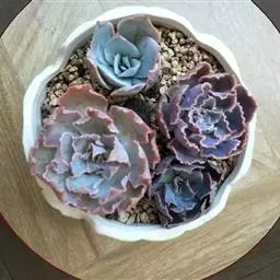 紫珍珠是景天科石莲花属的多年生肉质草本植物。植株中小型;叶片肉质,匙形,呈莲座状紧密排列;叶片粉紫色,…