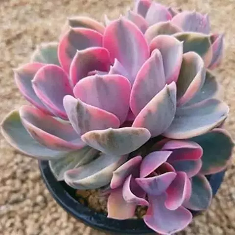 大和锦是景天科拟石莲花属的多肉植物。肉质叶排成紧密的莲座状,广卵形至散三角卵形,背面突起呈龙骨状,…