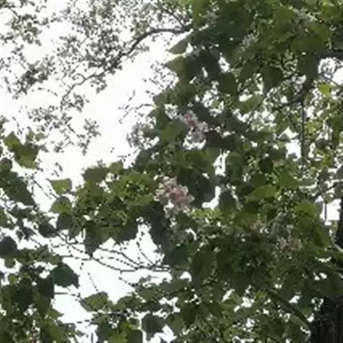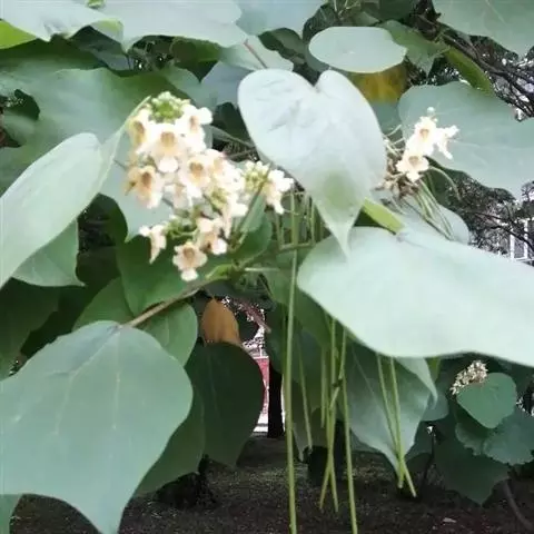 楸紫葳科小乔木,高8-12米。叶三角状卵形或卵状长圆形,宽达8厘米,顶端长渐尖,基部截形,…
