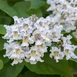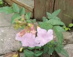 危害症状:白粉病侵染美国凌霄的枝叶和嫩梢,发病初期叶片着生黄色小斑点,随后逐渐增大并相互连接,病斑上着生一层白色粉状物,后叶片发生皱褶,凸凹不平,嫩梢扭曲,发病严重时影响生长,花小而色淡。
