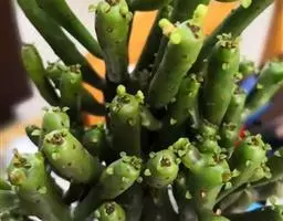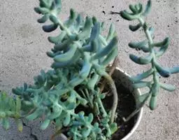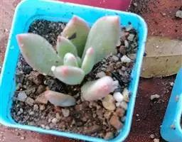 蓝黛莲是一种景天科厚叶草属植物。叶片呈略扁的圆柱形,排列成莲座状;颜色为灰绿色,…
