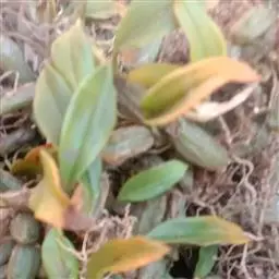 苞舌兰:假鳞茎扁球形,通常粗1-2.5厘米,被革质鳞片状鞘,顶生1-3枚叶。叶带状或狭披针形,…