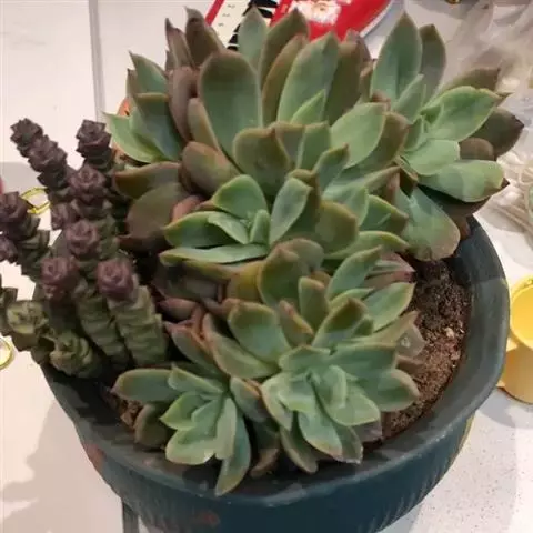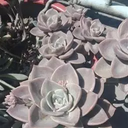 紫珍珠是景天科石莲花属的多年生肉质草本植物。植株中小型;叶片肉质,匙形,呈莲座状紧密排列;叶片粉紫色,…
