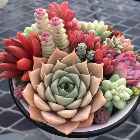 立田锦多肉,易群生的景天科拟石莲花属和厚叶草属杂交多肉品种。茎直立,株高30厘米以内,其叶排列呈莲…