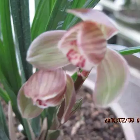 建兰素花,绿白色,清香,一枝开花5至12朵。叶色钢青,细而挺拔,有铮铮铁骨之相,所以叫铁骨素。在日…
